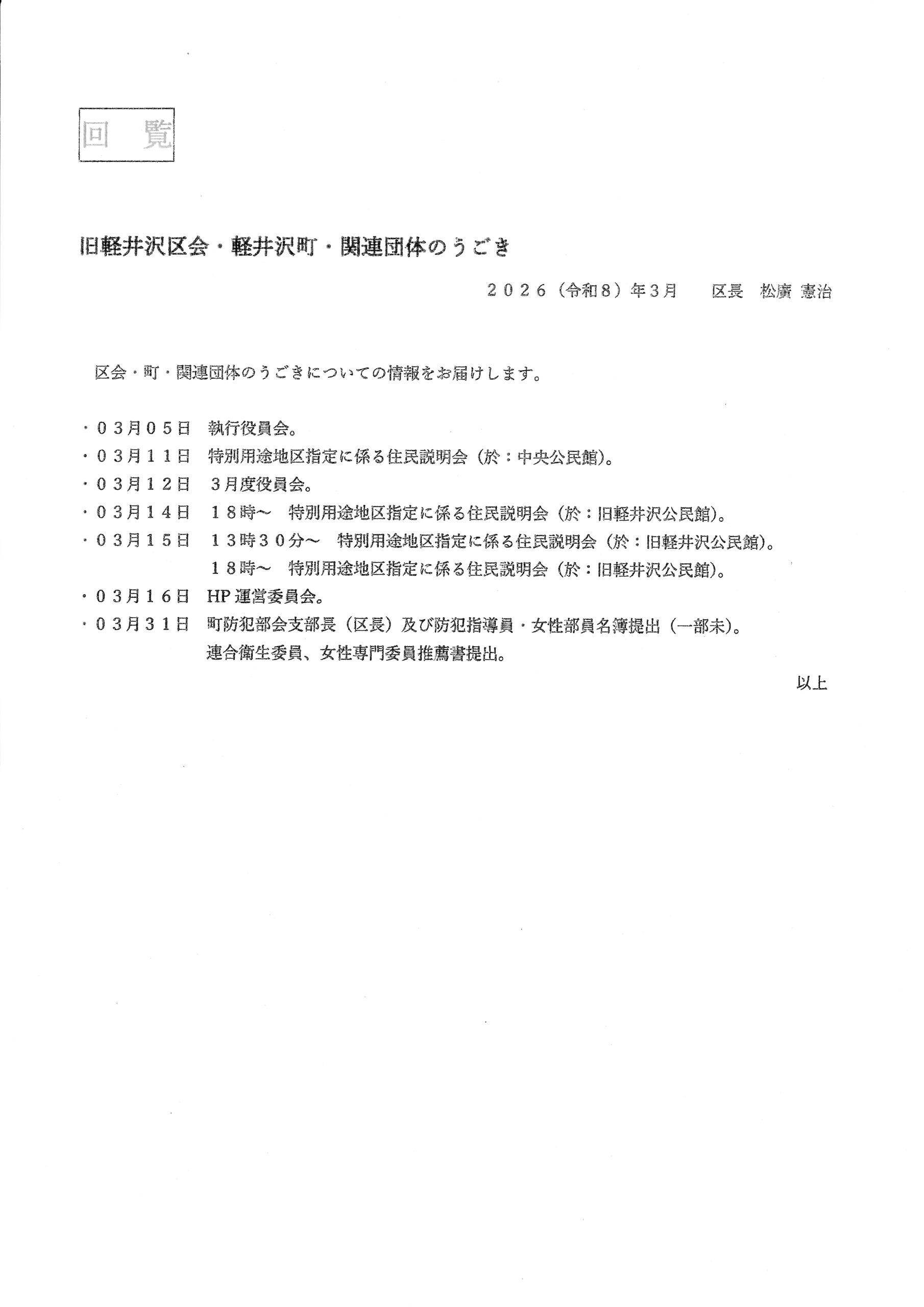 4月1日回覧 4月1日の回覧です。 佐藤桂章2026-04-03T14:05:55+09:00 関連投稿 3月15日回覧 3月15日回覧 3月1日回覧 3月1日回覧 2月1日回覧 2月1日回覧 1月15日回覧 1月15日回覧